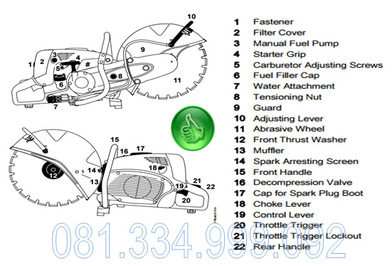 Digunakan untuk memotong beton, batu, bata, aspal, ubin, dan bahan padat lainnya.